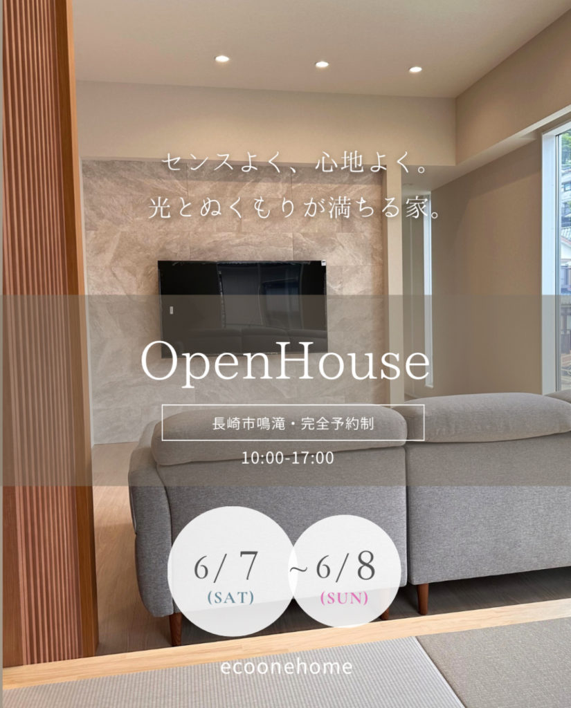 「センスよく、心地よく。 光とぬくもりが満ちる家」完成見学会/長崎市鳴滝